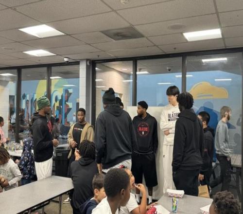 第一条消息,据开拓者记者Sean Highkin报道,球队今天在北波特兰的一家自我提升中心与孩子们进行互动。杨瀚森和利拉德都有参与了这一项活动,杨瀚森巨塔一般的身材让社区孩子们感到好奇。