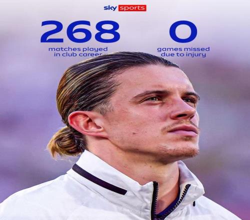 据天空体育统计,在加盟热刺前,加拉格尔一共出战过268场俱乐部比赛,从未因伤缺席过哪怕一场比赛。